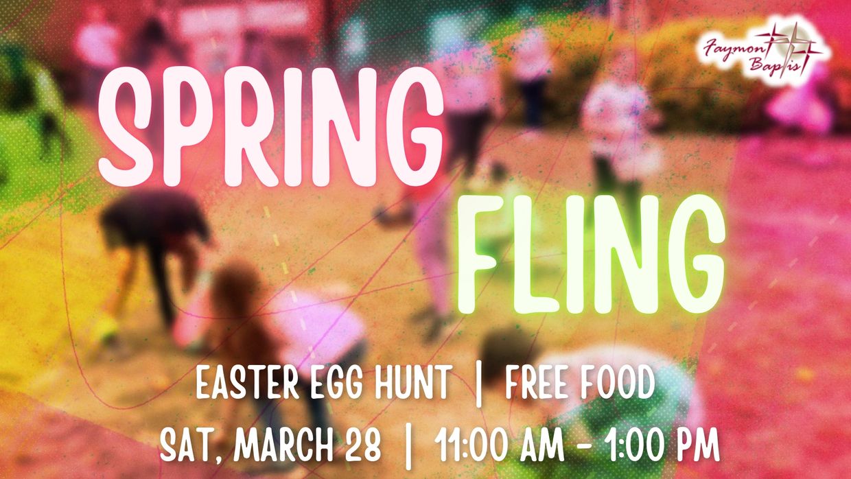 Join us for Spring Fling at Faymont Baptist Church on March 28 from 11:00 AM – 1:00 PM for a fun-filled community event the whole family will enjoy! This exciting spring celebration is designed especially for families with children through 5th Grade and is one of our favorite annual outreach events.